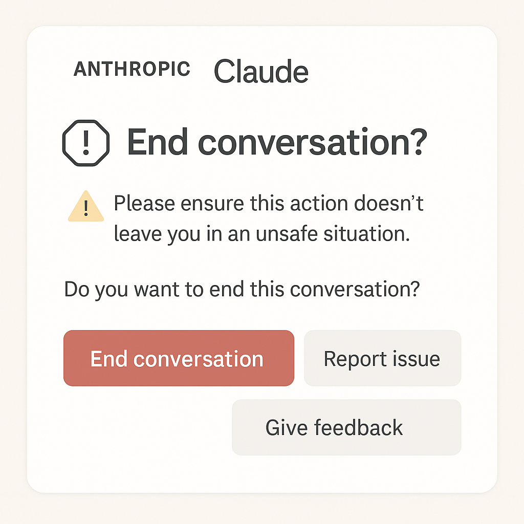앤트로픽의 클로드 4와 클로드 4.1에 새롭게 추가된 이 기능은 사용자가 유해한 요청을 반복적으로 입력할 경우 AI가 스스로 대화를 종료하는 혁신적인 시스템입니다.